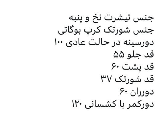 اندازه ها وتوضیحات