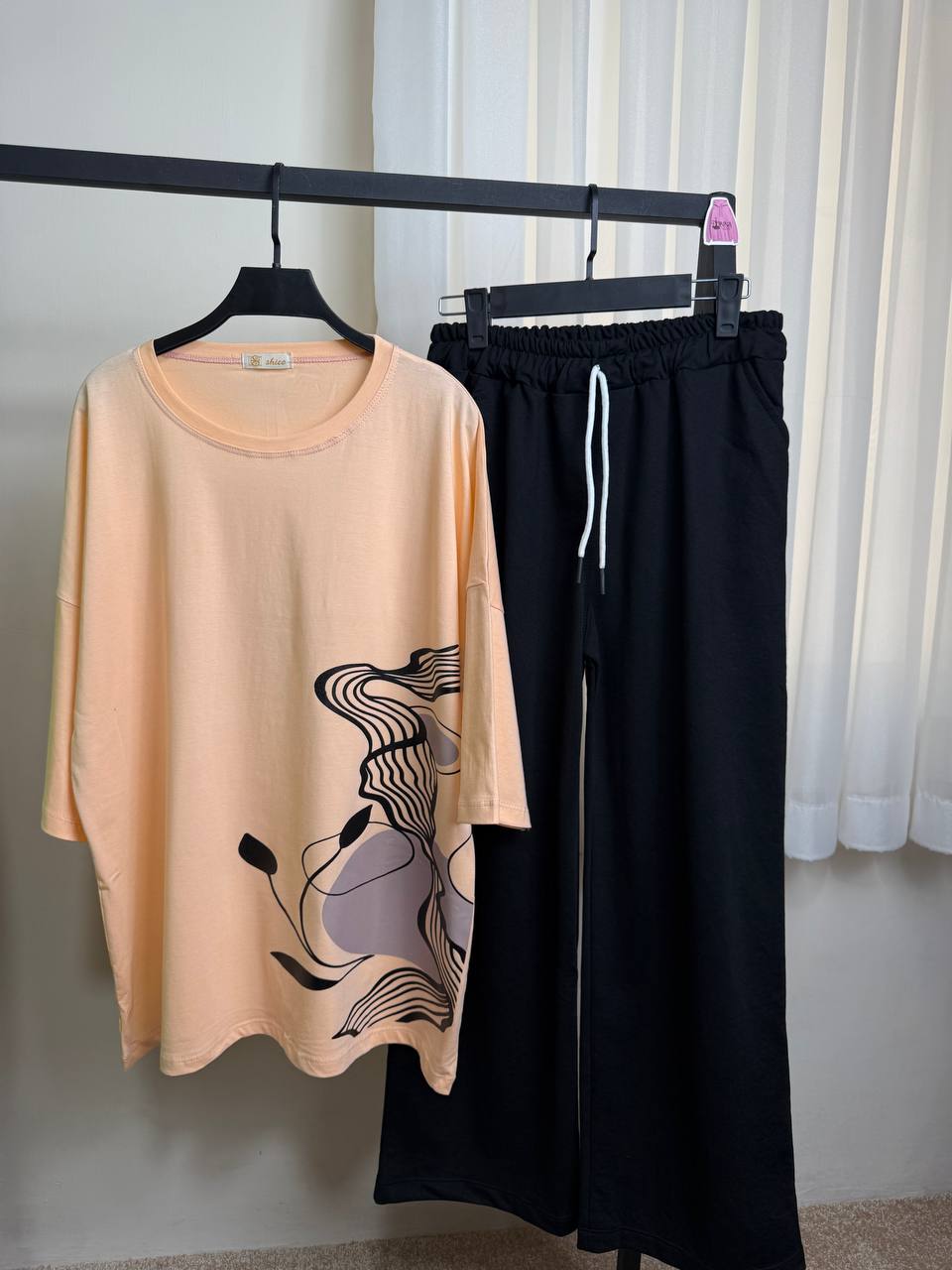 ⭐️ست تیشرت شلوار لانگ و بگ ⭐ تیشرت نخ پنبه سوپر ⭐️جنس شلوار گلکسی ⭐قد شلوار 103 دور کمر:70 تا 100 دور ران: 60 تا66 دور باسن:120 فاق:36 ________ قد تیشرت 75 دور سینه 125 ⭐فری سایز تا 50 ⭐️8 طرح وچاپ متنوع