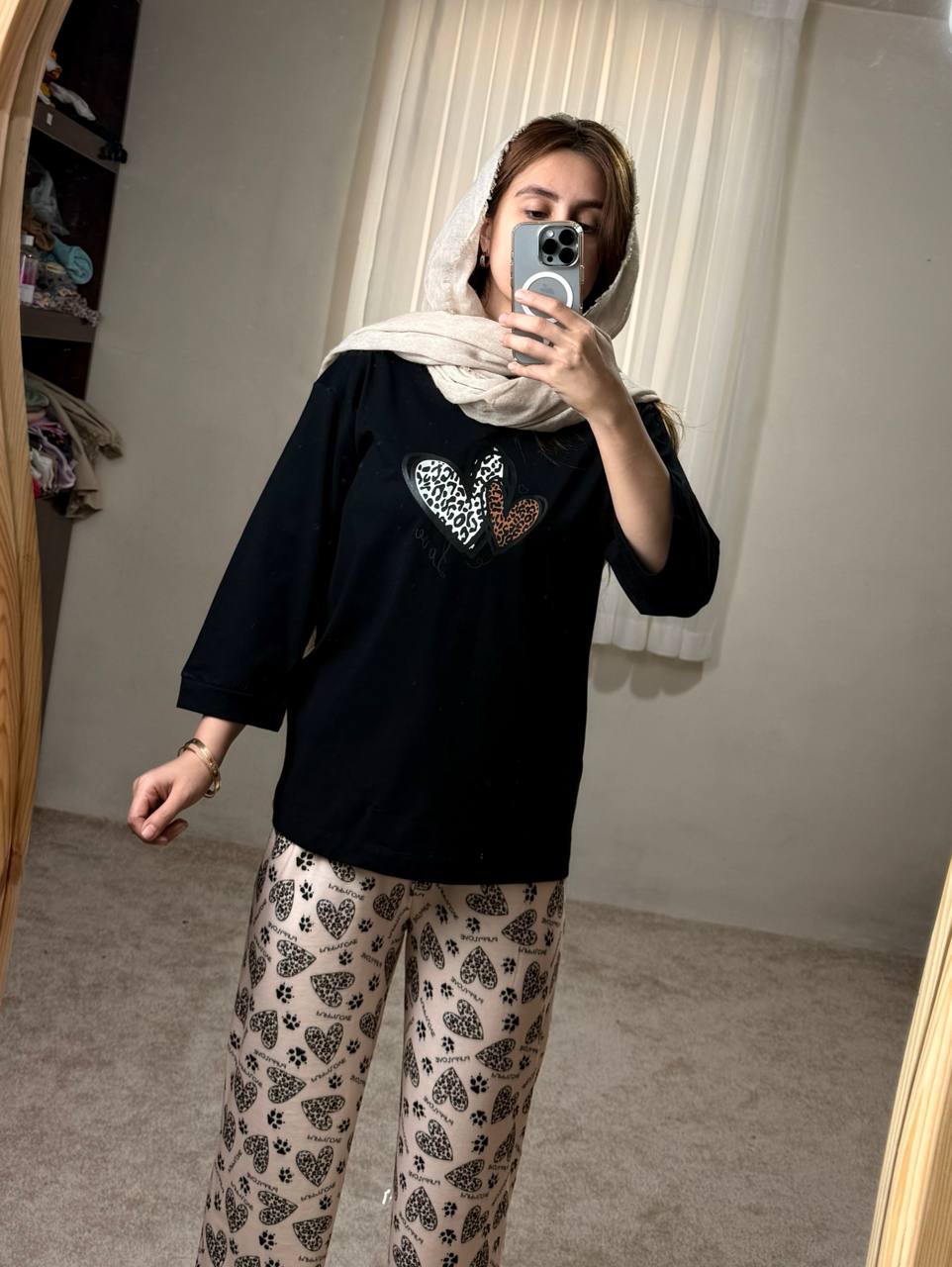 اندازه ها : تیشرت👇👇 قد ۷۰ / دورسینه ۱۰۴ تا ۱۲۰ /قد آستین از یقه ۶۴ شلوار👇👇 قد ۹۶ / دور کمر ۶۰ تا ۱۳۰ / ۱۱۰ تا۱۵۰ / دور ران ۶۰ تا ۸۰ / فاق ۳۵