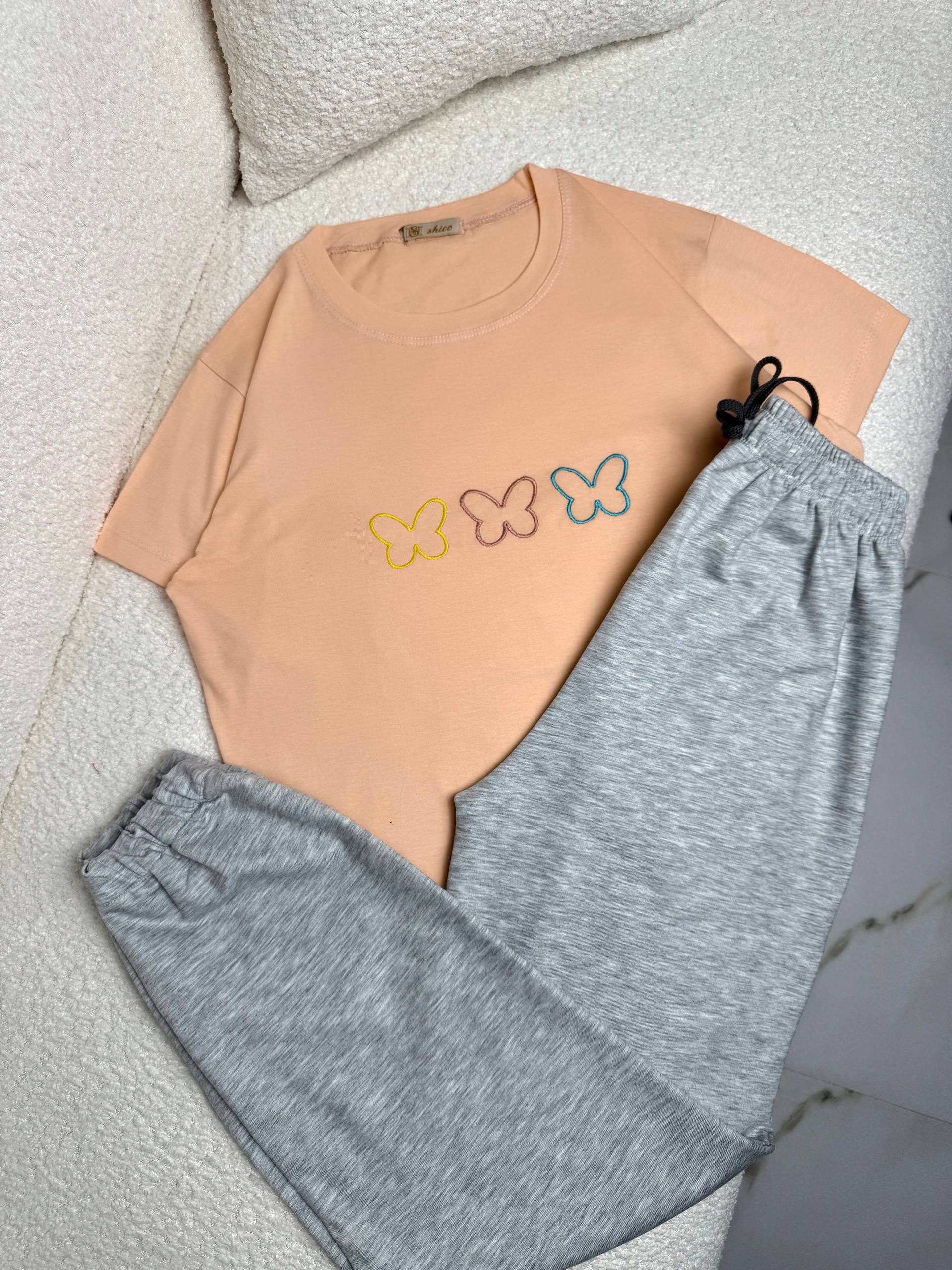 جنس : جنسش تیشرت نخ وپنبه ⚡️ جنس شلوار پنبه ملانژ☁️