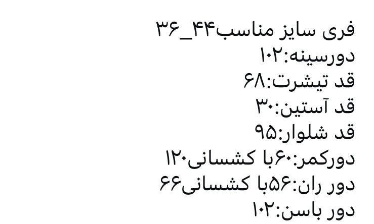 اندازه ها: به اسلاید اندازه ها دقت شود(داخل عکس ها می باشد)