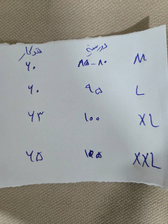اندازه: لطفا به جدول اندازه ها در اسلاید اخر توجه کنید(توجه کنید اندازه ها بدون کشسانی نوشته شده و هر مدل ۱۰ تا ۱۲ سانت کشسانی دارد)❌